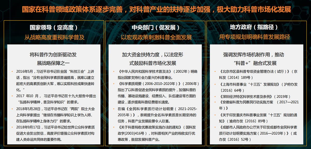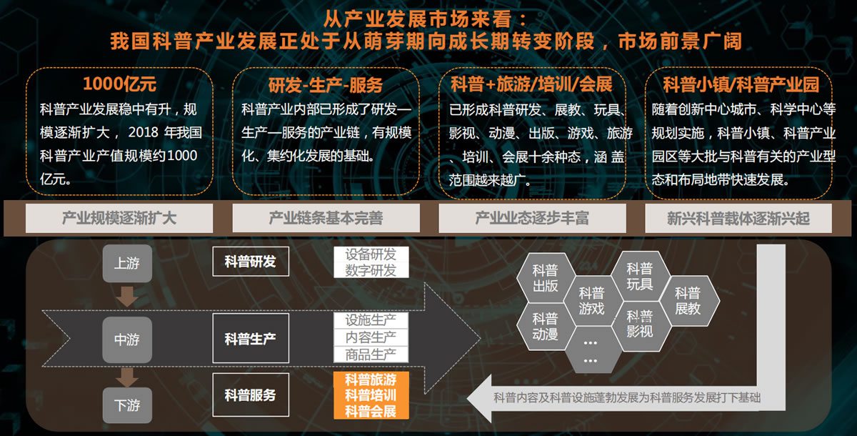 首頁 > > 工作成果 > 產業策劃研究與專項產業規劃 科普博覽園產業構建研究 科普博覽園產業構建研究 概要:發展科普產業,加強科普一翼,是落實習近平總書記“兩翼論”和“同等重要”指示精神的重要舉措, 是應對科技與人類社會發展的全球性問題的信心源頭,是推動構建人類命運共同體的重要組成部分。 政策導向 市場需求 問題驅動 博睿智庫專家可登錄后查看完整資料,如需幫助請聯系 博睿智庫專家 :您可點擊圖片預覽該成果的完整資料,如需下載或其他幫助,請聯系18983260581