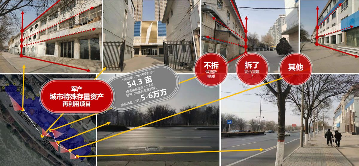 概要:項目現有建筑體量和規模,年代不是太久,主要是性質變了,從軍產交融通公司,從軍產轉社會化、轉產業化,該怎么利用的問題?現有規劃是公園綠地,始終有發展制約。先確定價值轉化方式.......