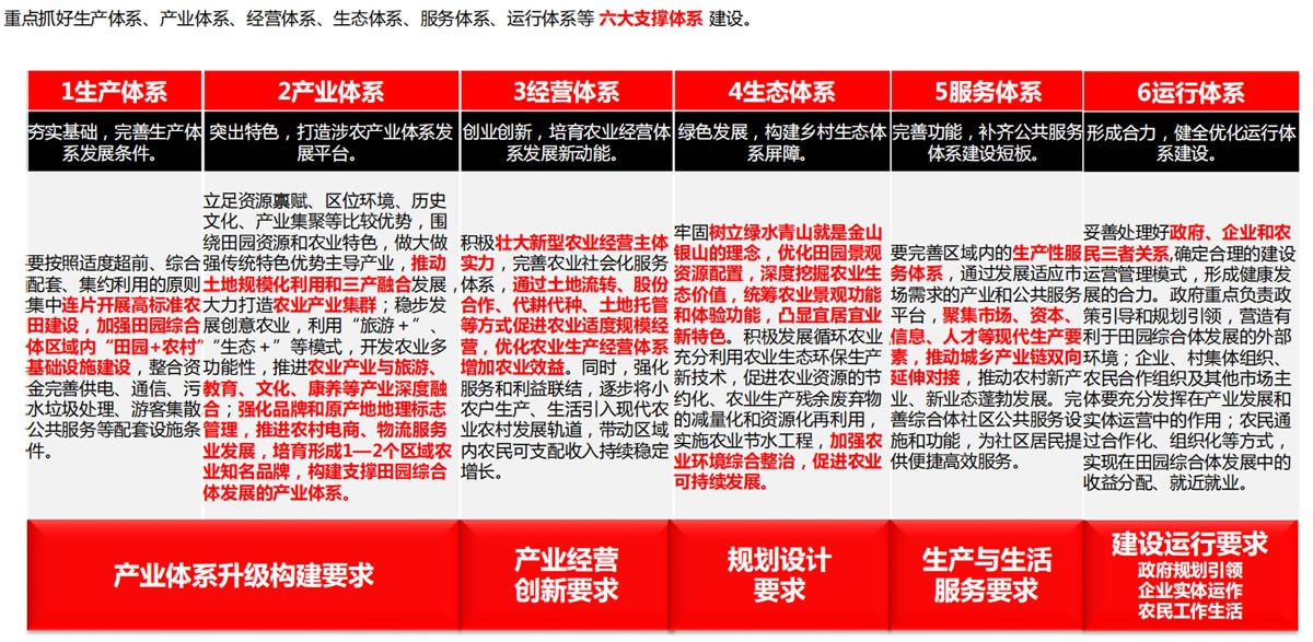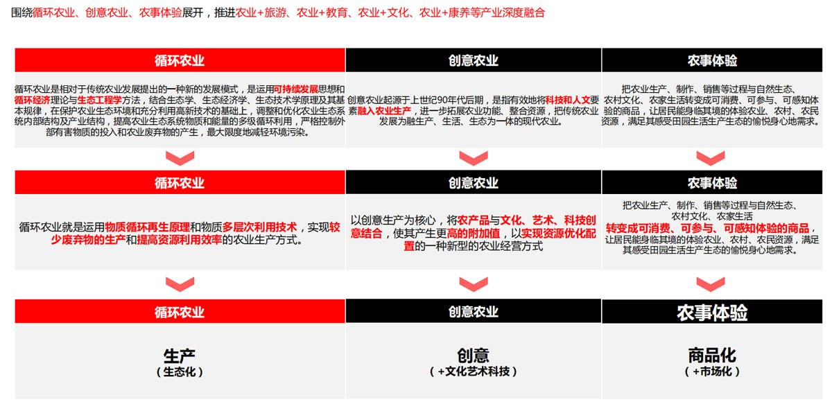 首頁 > > 工作成果 > 產業策劃研究與專項產業規劃 田園綜合體政策研究與解讀 田園綜合體政策研究與解讀 概要:田園綜合體是以涉農企業/農村合作社/新型農業經營主體為主要載體,集循環農業、創意農業、農事體驗于一體的農業綜合開發。 田園綜合體的構成三元素 田園綜合體的建設原則 田園綜合體的建設重點 博睿智庫專家可登錄后查看完整資料,如需幫助請聯系 博睿智庫專家 :您可點擊圖片預覽該成果的完整資料,如需下載或其他幫助,請聯系18983260581