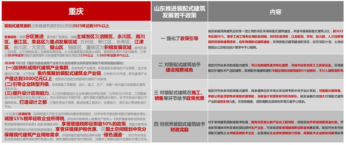 概要:規定新建民用建筑應安排一定比例的項目采用裝配式建筑建造,并逐年提高裝配式建筑占比,到2023年達到50%。要求工務工程和主城區的舊城、舊村改造項目,以及醫院、學校、幼兒園、人才住房等政府投資類建筑項目,應采用裝配式建筑建造;采用裝配式建筑建造的項目,應在項目計劃、土地劃撥或出讓及規劃設計要求中予以載明。